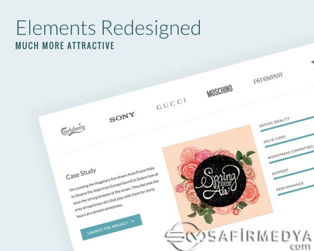 - Biçimlerle Güzel Portföy : Galeri, Video, Ses. v2.0'dan sütun, stil, görüntü oranı ile birçok portföy seçeneği seçebilirsiniz... Ayrıca, her bir projenin seçebileceğiniz kendi yerleşim seçenekleri vardır.