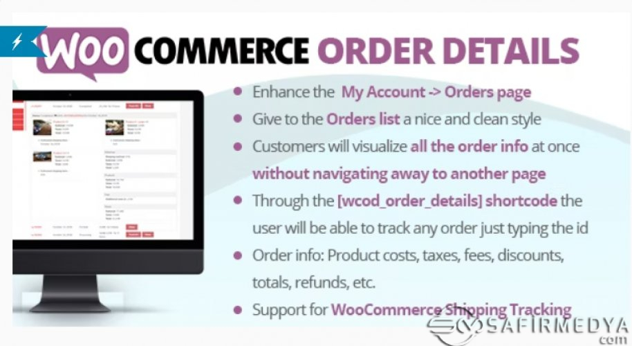 WooCommerce Sipariş Ayrıntıları, Müşterilerinizin tüm sipariş ayrıntılarını tek bir sayfada görselleştirmesine olanak tanıyan güzel ve temiz bir stil vererek Hesabım -> Siparişler sayfasını geliştirir!