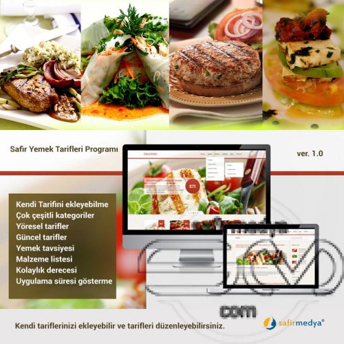 Yemek tarifleri kategori kategori ayrılmış olup, istediğiniz kategoriye göre tarif süzme yapabildiğiniz gibi yemek adına görede arama yaparak istediğiniz tarife kolayca erişebilirsiniz. Ayrıca İleri ve Geri tuşları ile tarifler arasında gezinti yapabilirsiniz.
